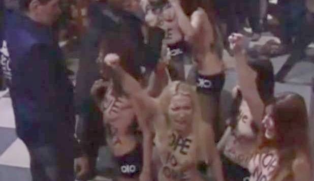 Le otto femministe volevano ‘festeggiare l’addio del Papa‘. All’inizio le dimostranti facenti parte del gruppo ucraino erano mescolate alla folla e nascoste da lunghi cappotti; una volta giunte però nelle vicinanze delle nuove campane provvisoriamente esposte nella navata, le donne hanno tolto gli indumenti; poi hanno estratto dei pezzi di legno che sono serviti loro per percuotere le campane urlando ‘Pope no more‘.