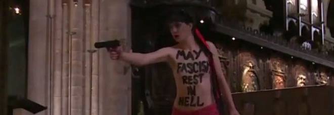 Ha simulato un suicidio nella cattedrale di Notre Dame, per questo è stata arrestata. E’ una militante del gruppo Femen, che si è presentata a Notre Dame a seno nudo, con la frase ‘possano i fascisti riposare all’inferno’ scritta sul petto.